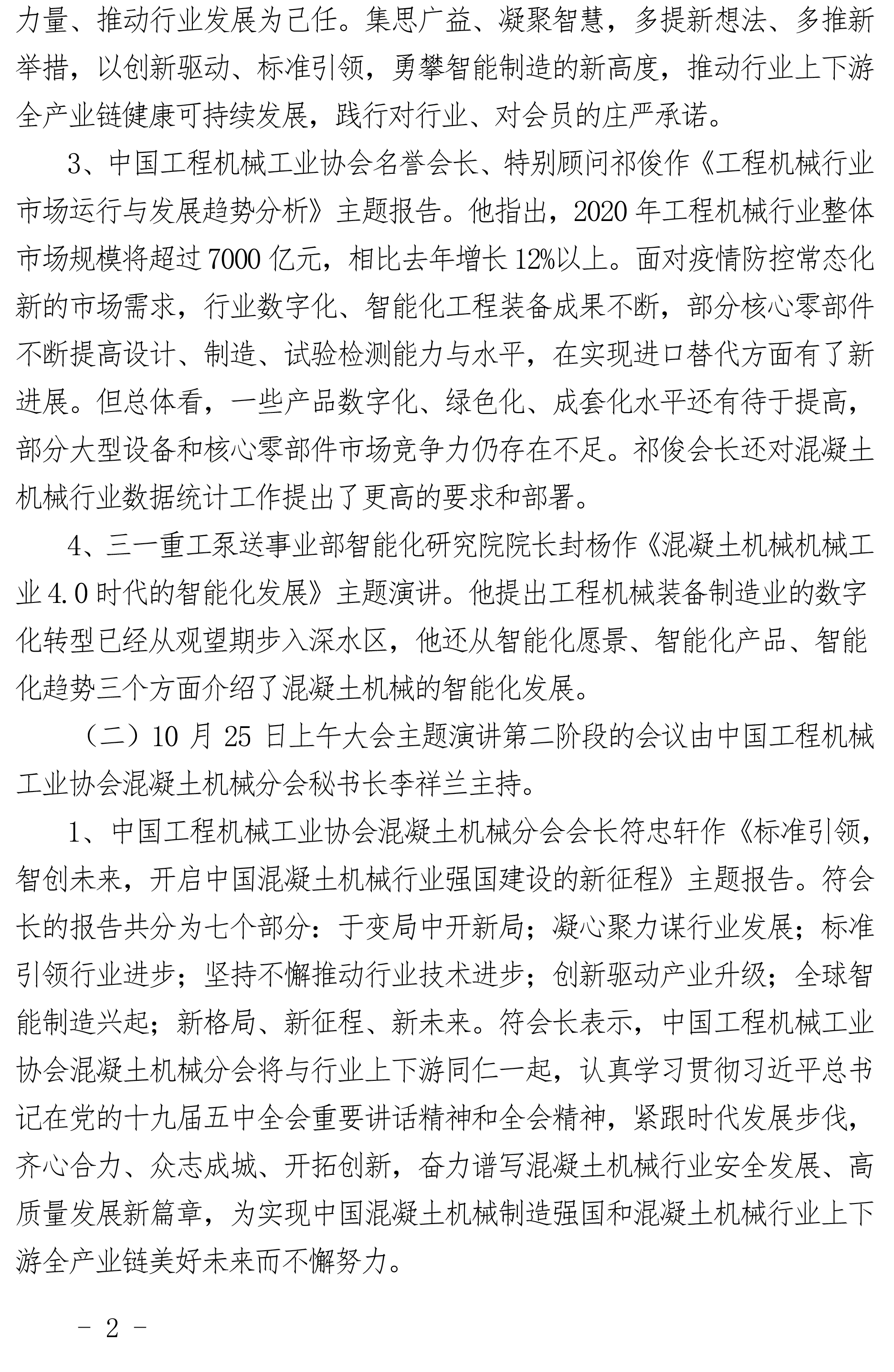 中國(guó)工程機(jī)械工業(yè)協(xié)會(huì)混凝土機(jī)械分會(huì) 2020年年會(huì)會(huì)議紀(jì)要
