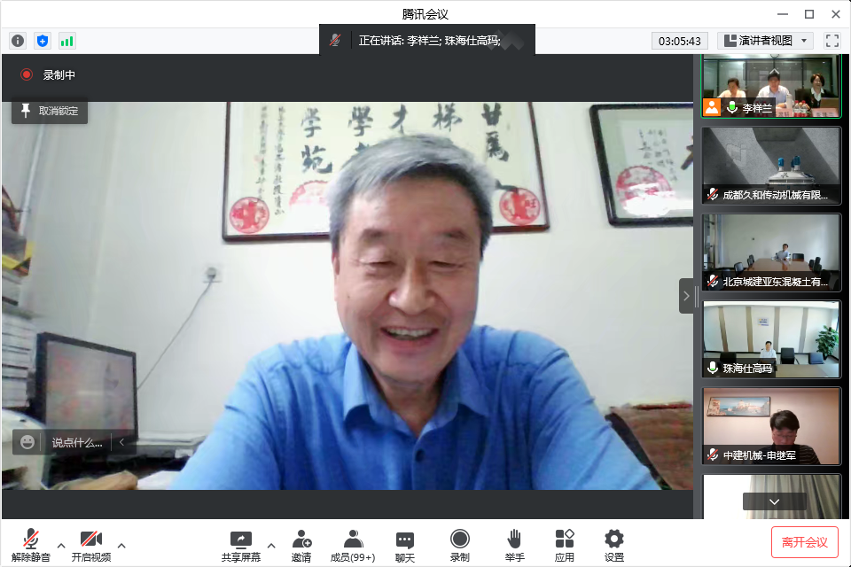 混凝土機(jī)械分會(huì)的年會(huì)還得到很多行業(yè)老前輩,專家、高工、行業(yè)精英的關(guān)注和支持,在自由交流環(huán)節(jié),中國(guó)工程機(jī)械工業(yè)協(xié)會(huì)名譽(yù)會(huì)長(zhǎng)祁俊祁會(huì)長(zhǎng)也發(fā)言祝賀,首先祝賀大會(huì)線上會(huì)議開(kāi)的非常成功,他呼吁現(xiàn)在中國(guó)混凝土機(jī)械在全世界已占主導(dǎo)地位,站在領(lǐng)跑位置,肯定了行業(yè)的領(lǐng)先性,但由于各種因素的疊加,行業(yè)也到了最困難的時(shí)候,協(xié)會(huì)要增加上下游的互動(dòng),爭(zhēng)取支持,抱團(tuán)取暖,希望混凝土機(jī)械在工程機(jī)械整個(gè)領(lǐng)域大家共同進(jìn)步,相互幫扶渡過(guò)難關(guān)。