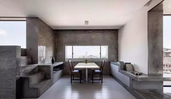 清水混凝土的材質(zhì)效果可以表達(dá)高技和冷酷的色域,或者趣味的藝術(shù)空間。它可能不適合每一個(gè)人,但它卻對(duì)空間形成一種獨(dú)特的質(zhì)感和氣氛。如果操作不當(dāng),會(huì)讓人覺(jué)得不舒適,因?yàn)槟阃浟嘶炷林挥性谡_的設(shè)計(jì)師之手才能表現(xiàn)出最完美的張力,而且混凝土可以是一個(gè)赫然的時(shí)尚元素。