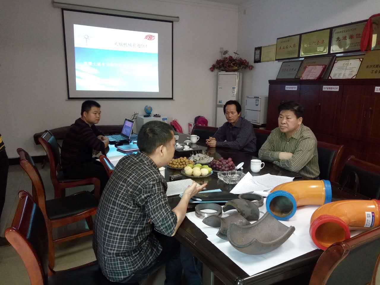 2016年5月1日上午,受長(zhǎng)沙天賦機(jī)械設(shè)備有限公司熱情邀請(qǐng),符忠軒會(huì)長(zhǎng)利用五一假期時(shí)間對(duì)混凝土機(jī)械配件——耐磨彎管供應(yīng)商進(jìn)行了走訪調(diào)研。