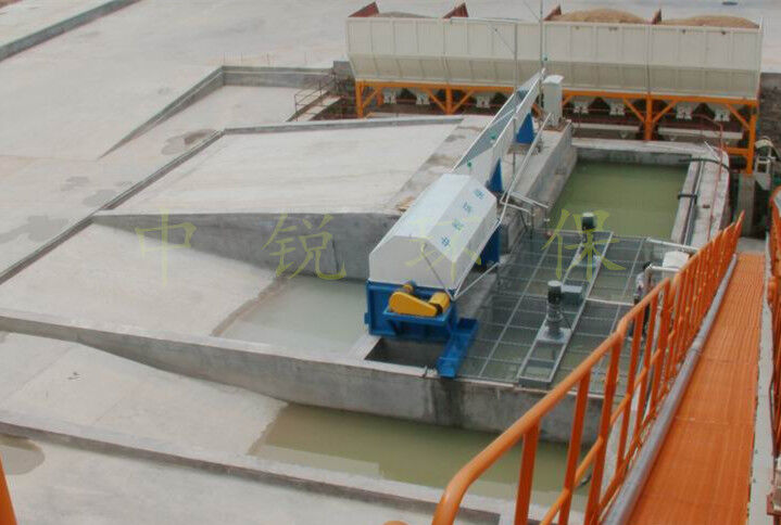 該系統(tǒng)主要由:攪拌車加水清洗裝置,溜槽輸送裝置,砂石漿水分離裝置,和泥漿水后處理裝置組成?;炷凛斔驮O備清洗后,將殘余混凝土排入溜槽中,在高壓水流沖擊下,經(jīng)溜槽進入砂石分離機,在不斷旋轉的分離機作用下,對混凝土進行充分的清洗,同時將砂、石進行分離,分離后的砂、石在導料葉片的作用下背向流動,再通過提升式出料口排出分離機,分別堆放。清洗后的漿水從分離機的底部排出進入沉淀池逐級沉淀后循環(huán)使用或進入攪拌池回收利用。進入攪拌池(一般情況2個攪拌池)的漿水為了防止沉淀凝固,需通過攪拌器的作用,攪拌器的工作為間歇式。分離出水泥漿在連續(xù)的攪拌器作用下,再通過高壓污水泵輸送到攪拌樓中待生產計量再利用。整個控制系統(tǒng)設有手動和自動控制,方便控制設置,整個系統(tǒng)運行可靠,故障率低,維護量少等特點。
