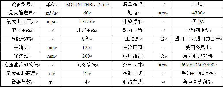 攪拌一體臂架泵車(chē)基本配置表