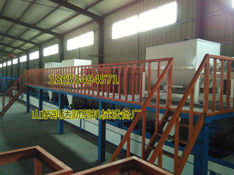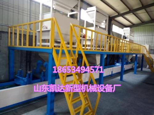 1、自動制板機;本機采用自動化多道輥壓、布網(wǎng)、鋪無紡布制板,一次成型,制板速度快,板材料光滑平整,規(guī)格任意調(diào)整,厚薄均勻,本機在砂漿狀態(tài)下,上下按順序布料布網(wǎng),同機實現(xiàn)復(fù)合制作與EPS聚苯板或XPS擠塑板復(fù)合一次性成型,并在復(fù)合板里面形成砂漿網(wǎng)狀立體聯(lián)接結(jié)構(gòu)。由于采用的技術(shù)先進,工藝獨特,不僅是生產(chǎn)效率成倍提高,制板成本大幅降低,而且極大的提高了保溫板的綜合質(zhì)量,機械強度和面層的粘結(jié)牢度,從根本上克服了傳統(tǒng)聚苯板和擠塑板現(xiàn)場施工造成的重復(fù)勞動復(fù)雜工序、及粘結(jié)不牢固、施工成本高等缺點。