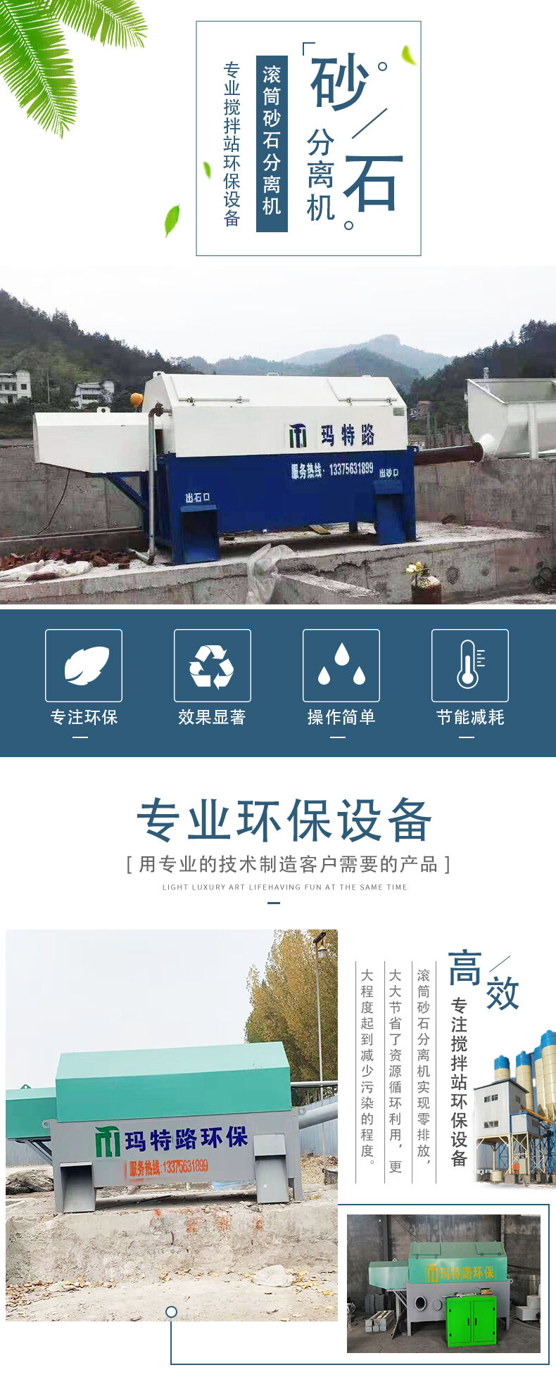 滾筒式砂石分離機主要有導(dǎo)料流槽、內(nèi)外螺旋篩砂滾筒、出石口、溢水槽、噴淋管、驅(qū)動系統(tǒng)、供水系統(tǒng)及控制系統(tǒng)共八個部分組成。當殘留混凝土與水進入導(dǎo)料槽后,同時連續(xù)注入循環(huán)水,在水流的沖擊下,混合料漿水流入漿池。清洗過的砂子、石子分別從出砂口和出石口落入料池。流入攪拌池