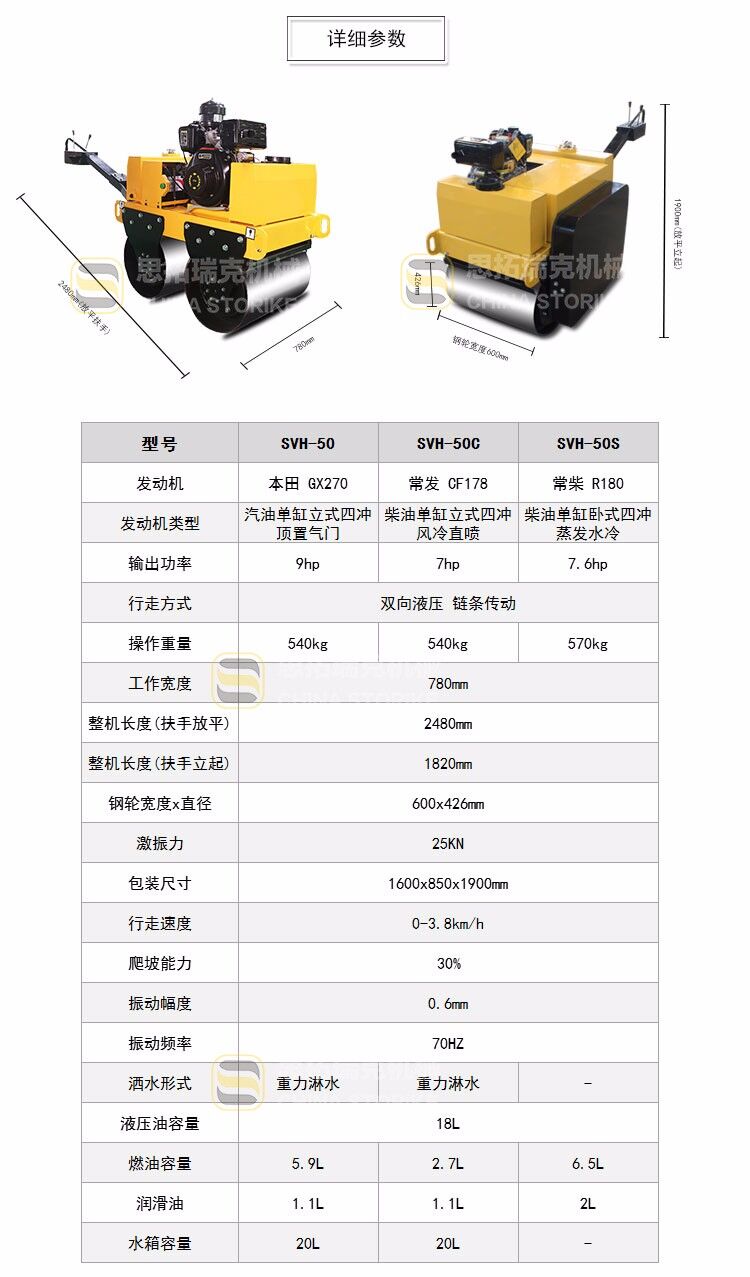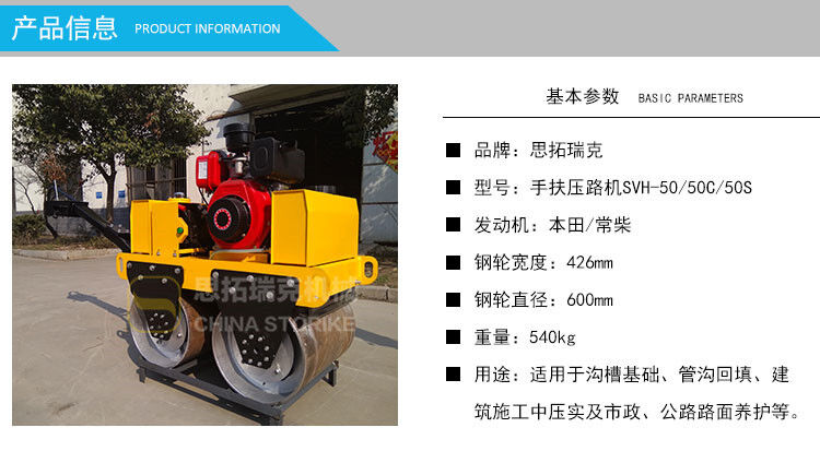 歸屬行業(yè):山東思拓瑞克SVH50 手扶式雙鋼輪小型壓路機(jī)