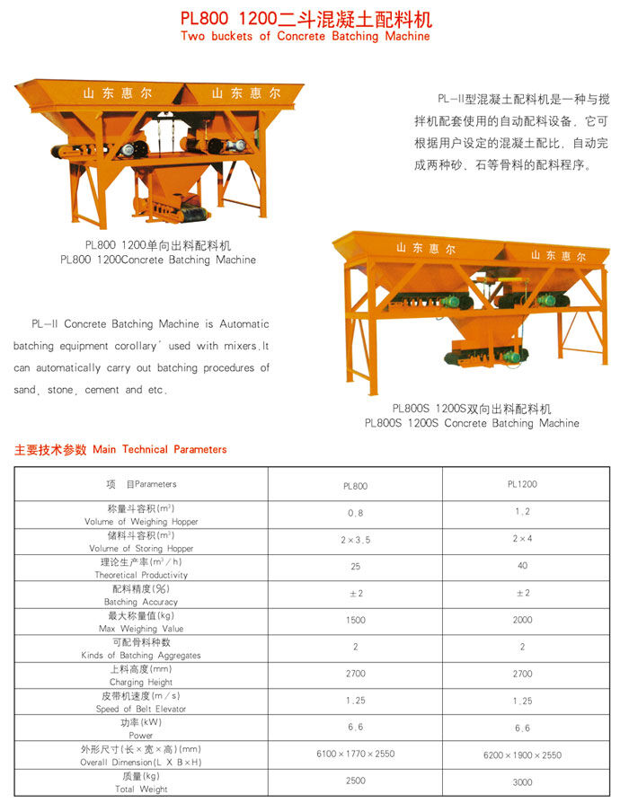 PL800二斗混凝土配料機(jī)