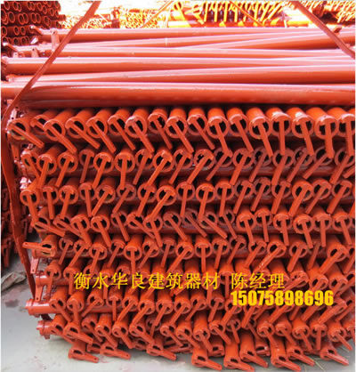 河北衡水華良建筑器材聯(lián)系電話:150-7589-8696 ,輪扣腳手架、碗扣腳手架、快拆式腳手架、承插式新型腳手架、直插式腳手架、鋼管腳手架、建筑腳手架,新型建筑支撐,腳手架,模板支撐,新型模板支撐, 新型建筑支撐。這種新型材料的特點(diǎn)是:耐腐蝕,彈性大,堅(jiān)固不變形。易搭拆腳手架,施工速度快的腳手架。 每根支撐桿可以支撐3-4噸左右,兩根主龍脊之間可以承重2-2.5噸的重量,每根副龍脊可以承重1噸?,F(xiàn)在工地現(xiàn)澆水泥一般厚度也就是10-15厘米,同等面積重量最多100-150公斤,所以這個(gè)支撐力度一般高層建筑完全夠用。