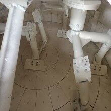卸料門的開關采用帶緩沖裝置的工程液壓油缸,保證了開關門的平穩(wěn)性及可靠性。