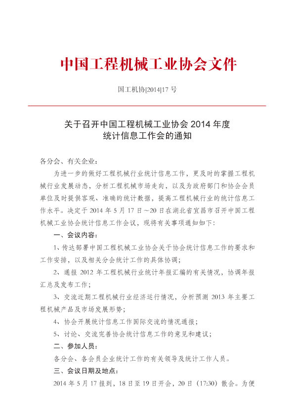國工機(jī)協(xié)2014年17號文協(xié)會統(tǒng)計工作會議通知